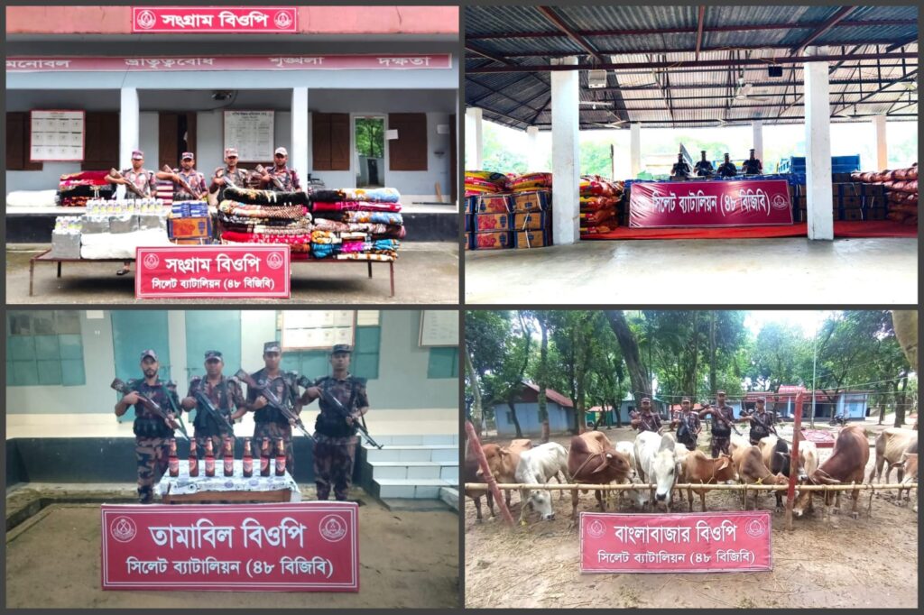 বুধবার (২১ আগস্ট) গোপন সংবাদের ভিত্তিতে সিলেট ব্যাটালিয়ন (৪৮ বিজিবি) এর সংগ্রাম, বাংলাবাজার, তামাবিল, সোনালীচেলা লাফার্জ ও ডিবিরহাওর বিওপি কর্তৃক বিশেষ অভিযান পরিচালনা করা হয়।