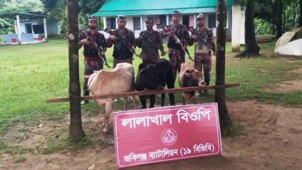জৈন্তাপুর সিলেট সংবাদদাতা :: সিলেটের জৈন্তাপুর সীমান্তে জকিগঞ্জ ব্যাটালিয়ন (১৯ বিজিবি) এর বিশেষ অভিযানে ভারতীয় ১১টি গরু ও ১টি মহিষ আটক করা হয়েছে। শুক্রবার (২৯ আগস্ট ২০২৫) গোপন সংবাদের ভিত্তিতে
